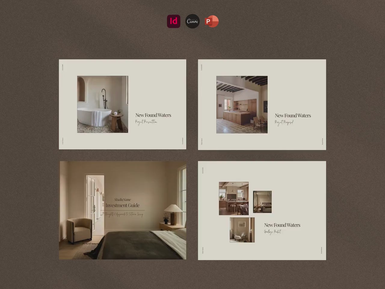 Proposals that win projects. Presentations that guide clients through your thinking. Onboarding guides that set boundaries. FF&E schedules that track procurement. Goodbye packets that close projects cleanly.